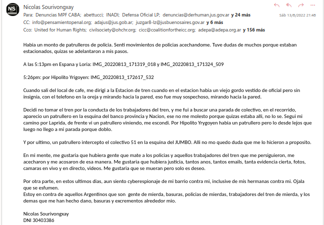 Email de Denuncia a la Policia Federal/